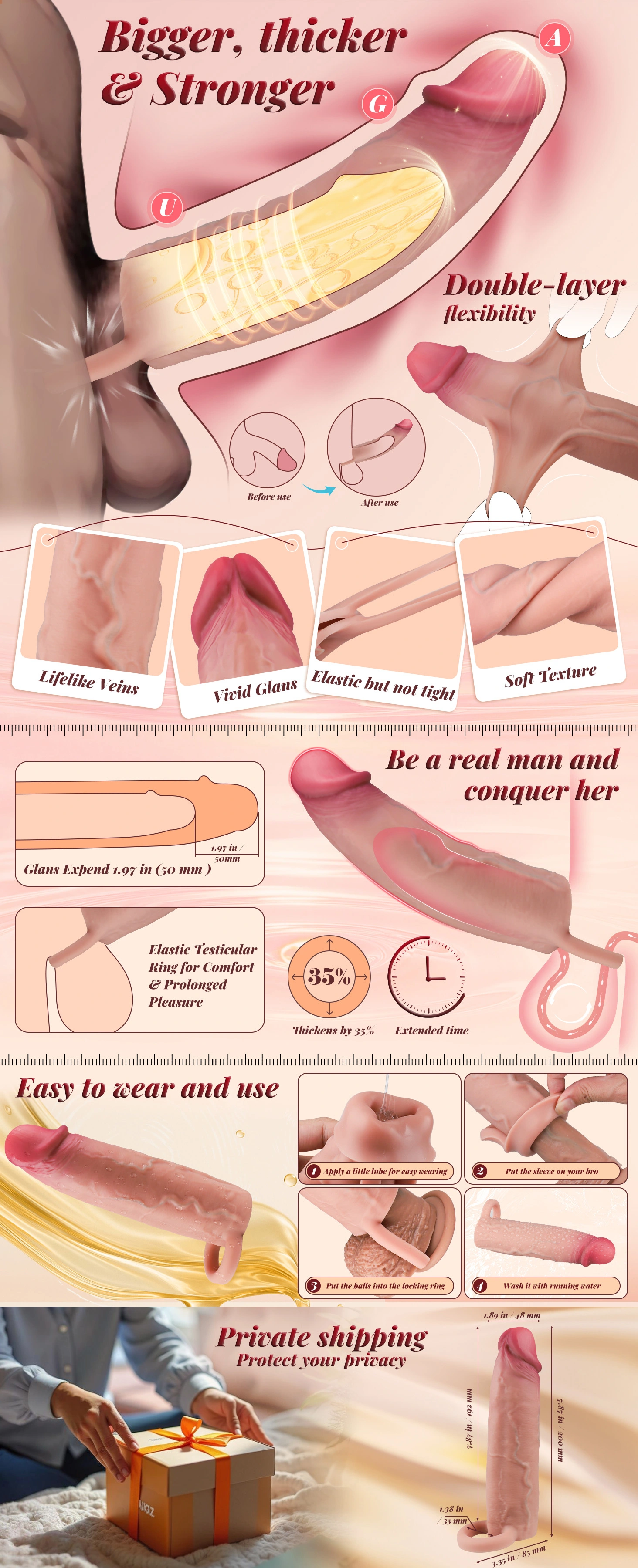 Chad 7.87"×1.89"Realistic Sliding Skin Soft Penis Sleeve (US In Stock )