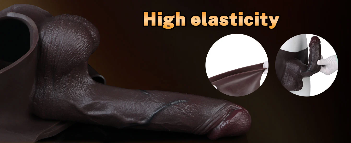 Kim 9.84” x 1.85” Wearable Black Huge Realistic Cock Sleeve